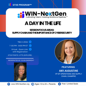 Open to NextGens and parents Amy Augustine, VP of Operations and Supply Chain, Champro, will be going over her “Day in The Life” in the Supply Chain and Amy Augustine, VP of Operations and Supply Chain, Champro, will be going over her “Day in The Life” in the Supply Chain sector and the importance of … <a title="A Day in The Life With Amy Augustine – Coming This Year" class="read-more" href="https://www.win-nextgen.org/news/a-day-in-the-life-with-amy-augustine-tbd/" aria-label="Read more about A